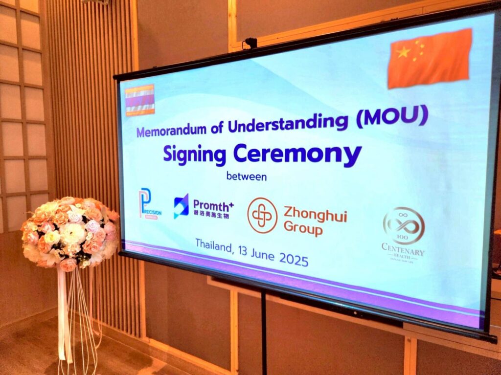 เมื่อวันที่ 13 มิถุนายน 2568 ที่ผ่านมา บริษัท พรีซิชั่น พรีเมียม จำกัด (Precision Premium Company Limited) เดินหน้าสู่การเป็นผู้นำด้านเทคโนโลยีห้องปฏิบัติการทางการแพทย์ในประเทศไทย ล่าสุดประกาศความร่วมมือ(MOU) กับพันธมิตรระดับภูมิภาคเอเชีย 3 ราย ได้แก่ บริษัท เซี่ยงไฮ้ โพรเมท ไบโอเทคโนโลยี จำกัด จากประเทศจีน, บริษัท จงฮุย เอเชียแปซิฟิก โฮลดิ้งส์ จำกัด จากฮ่องกง และบริษัท เซ็นเทนารี เฮลท์ จำกัด จากประเทศไทย เพื่อร่วมกันพัฒนาและผลักดันผลิตภัณฑ์แล็บแบรนด์ใหม่ภายใต้ชื่อ “PROMETH” สู่ตลาดในประเทศไทยอย่างเป็นทางการ