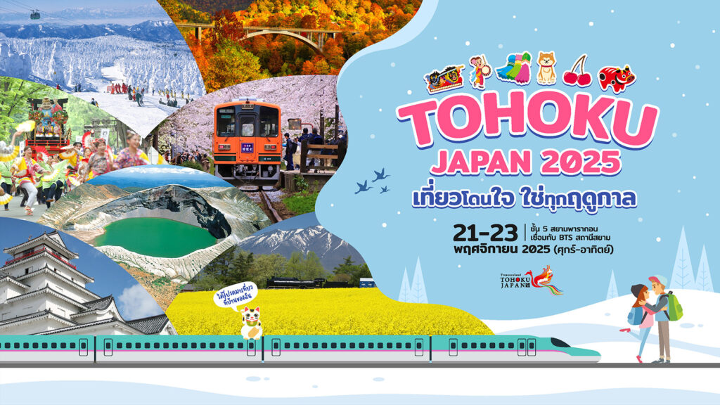 ผู้ที่กำลังมองหาแรงบันดาลใจสำหรับทริปญี่ปุ่นครั้งถัดไป ไม่ควรพลาดมาสัมผัสเสน่ห์ของโทโฮคุ พร้อมอัปเดตข้อมูลท่องเที่ยวญี่ปุ่นแบบครบทุกภูมิภาค ร่วมสนุกกับกิจกรรมมากมายและลุ้นรับของที่ระลึกสุดพิเศษได้ใน “งานเที่ยวญี่ปุ่นด้วยตัวเอง & ทัวร์ ครั้งที่ 17” ระหว่างวันที่ 21–23 พฤศจิกายน 2025 ณ พารากอน ฮอลล์ ชั้น 5 สยามพารากอน