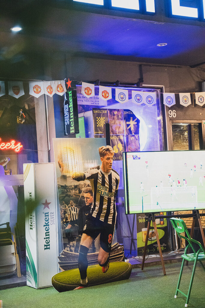 ภายในร้านถูกตกแต่งในธีมแฟนคลับของ นิวคาสเซิล ยูไนเต็ด ทั้งโทนสี ข้าวของตกแต่ง และมุมถ่ายรูปที่สื่อถึงเอกลักษณ์ของทัพ “สาลิกาดง” เพื่อเอาใจคอบอลที่อยากมีพื้นที่นั่งเชียร์ทีมรักแบบใกล้ชิด พร้อมสร้างบรรยากาศการรับชมฟุตบอลที่สนุก เข้มข้น และเป็นกันเองมากขึ้น